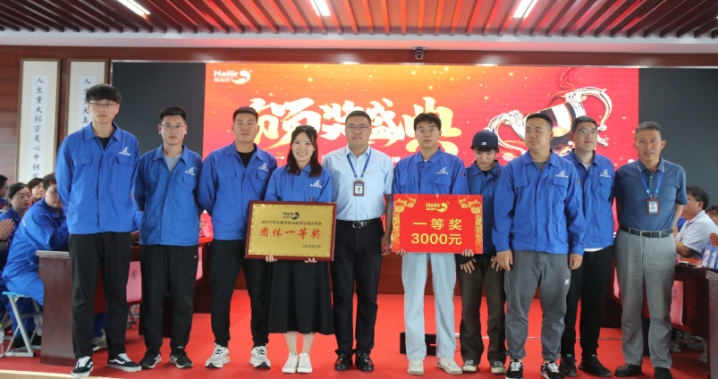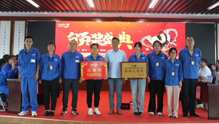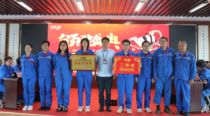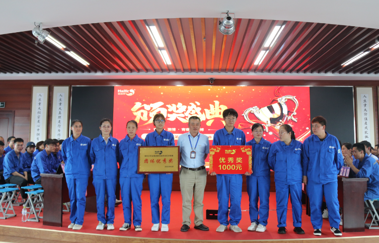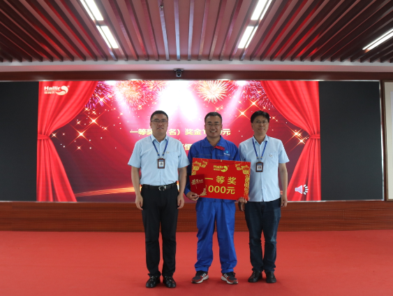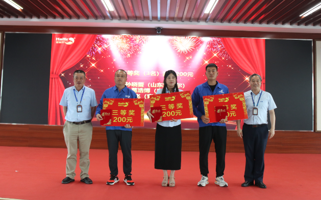 在热烈的掌声中,在场评委为获奖队员颁奖,同时在现场还对前期参加安全征文比赛获奖的人员进行了颁奖。安全征文一等奖获得者——来自恒宁工厂的孙正正代表获奖者发言,孙正正分享了自己的安全工作心得,并勉励大家感恩平台、学习成长,传递海利尔正能量。