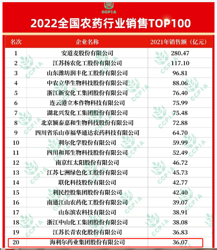 7月7日,第九届农药行业经济运行分析会暨2022农药行业名单发布会在浙江绍兴召开。会上揭晓了2022农药行业名单,其中betway必威以36.07亿元的销售额,荣登2022全国农药行业销售TOP100榜单第二十名。