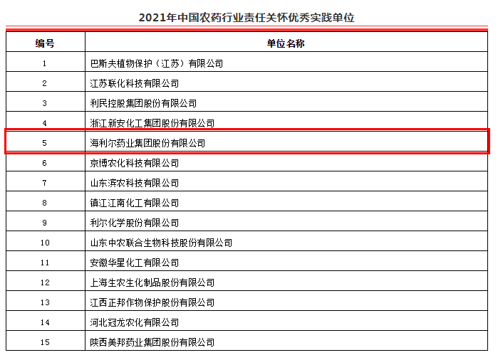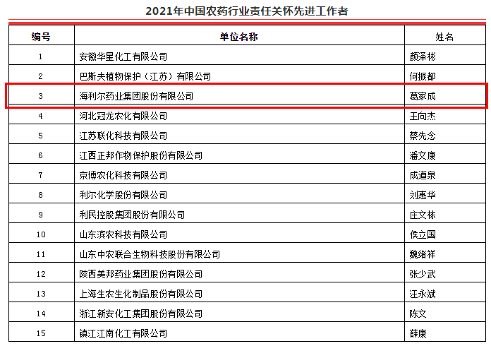 顺应时代潮流,实现共同发展。农药行业进入机遇和挑战并存的时代。只有牢牢把握时代发展脉搏,深入贯彻创新、协调、绿色、开放、共享发展理念,加快推进创新驱动发展战略,集团在总裁葛家成带领下,深入践行责任关怀理念在员工、企业和社会发挥的能效,加快服务转型,加大研发科技创新投入及转化,积极创新,为中国农药行业的高质量发展贡献了动力,未来,海利尔将继续秉承“专注作物科学,服务世界农业”的使命,脚踏实地,服务于农,助推农药行业高质量可持续发展。