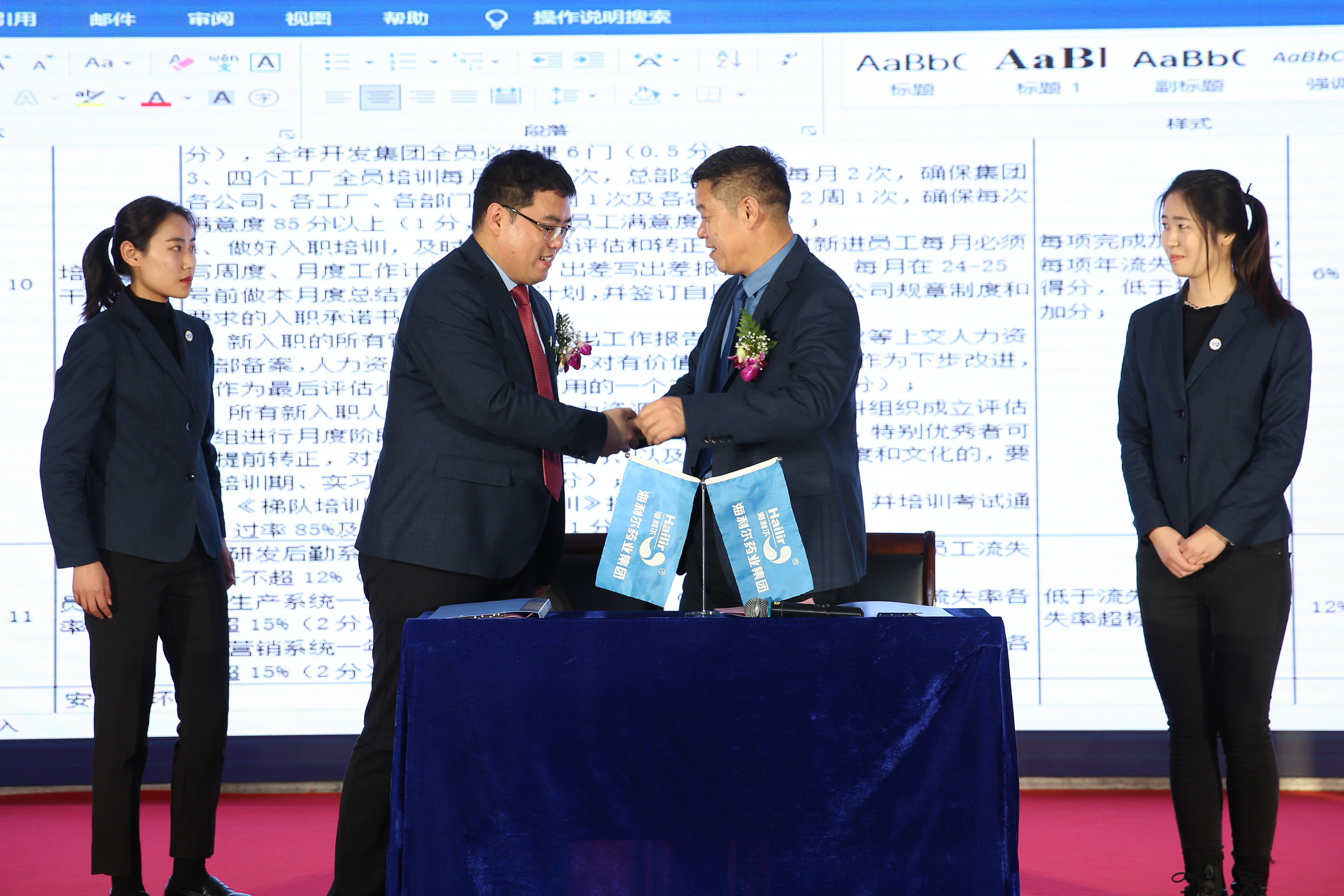 下午,集团人力资源总监宣布了2021年度集团管理干部聘任决定,各板块管理人员现场签订了2021年度目标责任状,集团总裁葛家成与各板块高管签订目标责任状并带领全体中高层进行就职宣誓。