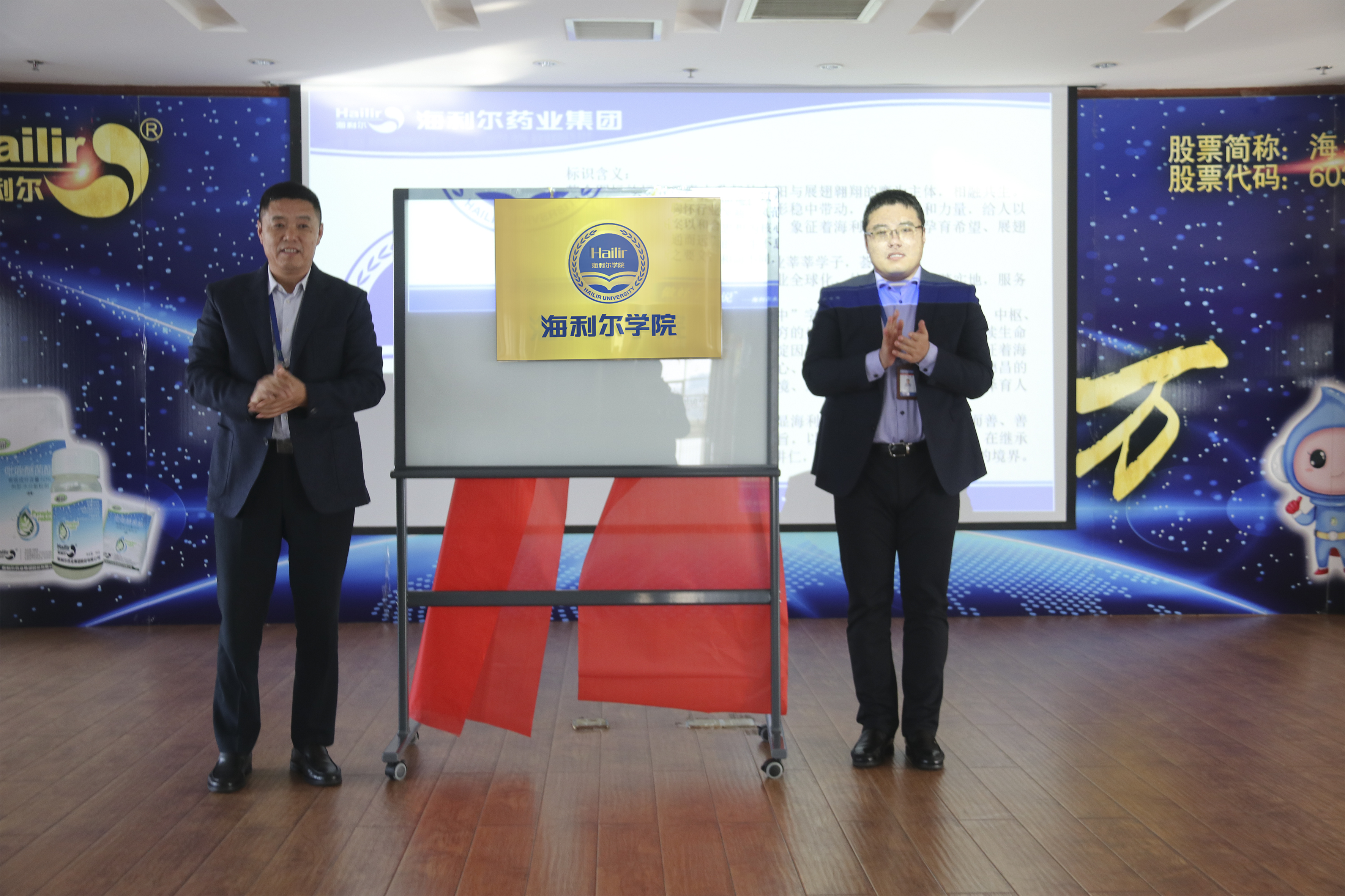 海利尔学院院长葛家成与海利尔学院名誉院长葛尧伦共同为海利尔学院揭牌,标志着运行四年的海利尔学院迎来了新的发展阶段!