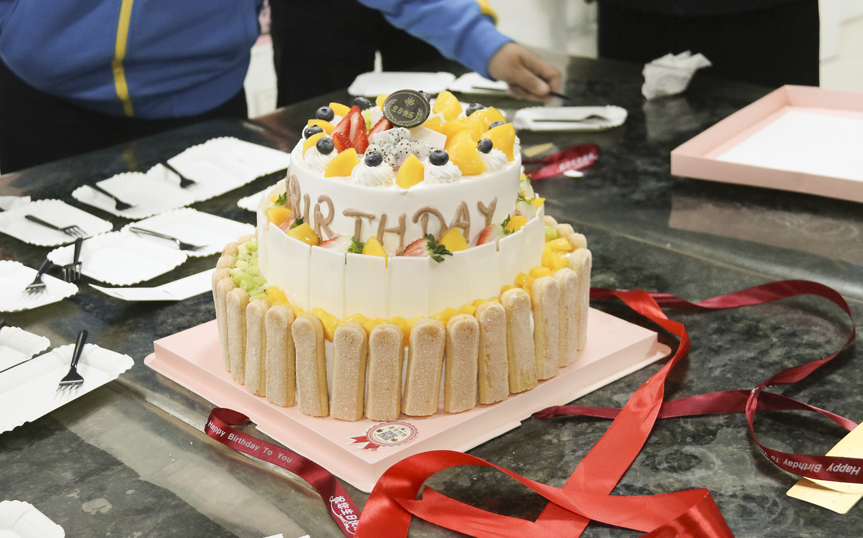 切开蛋糕后将欢乐分享给每一个人,寿星们彼此祝福,这个大家庭是如此的温馨。