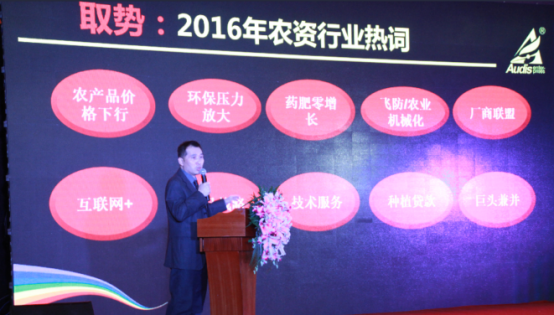 betway必威国内制剂营销中心市场总监陆元丁对农资行业的现状进行了解读并从取势、明道、优术三个方面阐述了奥迪斯下一步的战略规划。他提到,奥迪斯具备清醒的自我认识,看清并把握了农资行业的发展趋势,将凭借其在定位、产品、团队方面的优势抓住发展的机遇。他强调,奥迪斯有着清晰的战略规划,定位于做农药杀菌剂的领航者,专注于高端杀菌剂,在2017年,奥迪斯将通过细化管理,打造大品,强化队伍,提升服务四方面切实将战略转化为实际的行动和成果。他表示,奥迪斯愿与经销商朋友通力合作,共同打造厂商利益共同体、命运共同体,区域作物综合服务平台。
