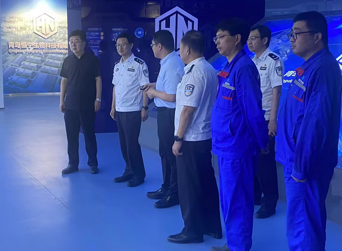 为落实保护管理、经济发展和打击治理电信网络诈骗工作,督导夏季治安打击整治集中统一行动工作,9月9日,青岛市副市长、市公安局党委书记、局长于瑞波一行到恒宁工厂调研指导。集团总裁葛家成、青岛恒宁生物科技有限公司总经理毛志建等热情接待了领导一行。