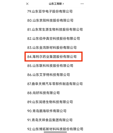 Since the launch of the activity in June, the enterprise application, department recommendation, expert review and other procedures have been completed according to the prescribed procedures, forming a shortlist of top 10 private enterprises in Shandong in 2022. Hailir Pharmaceutical Group Co., Ltd. was successfully selected as one of the top 100 private enterprises in Shandong! In this series of lists, the Group was ranked 10th in the top 10 leading high-end chemical industry and 84th in the top 100 innovation companies.