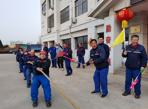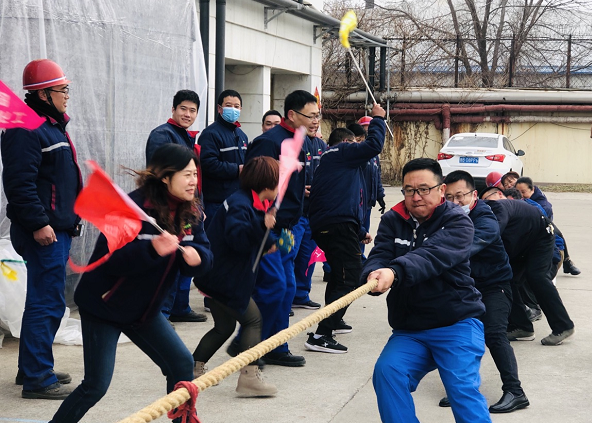 当日早上八时,象征着凝心、聚力、拼搏、生机的凯源祥开春拔河开始。本次比赛中,人力、财务、安环、技术、采购组成一队(后勤队),品管科、设备科、物管科组成一队(生产辅助队),一、四车间为一队,二、三车间为一队。
