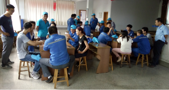 我们的参赛选手已全部入场。接下来人力行政科主任毛士伟宣布比赛规则。我们了解到,本次比赛采取的是计分制,一局定胜负,在半决赛获胜的一队可以晋级,继续争夺前三名。