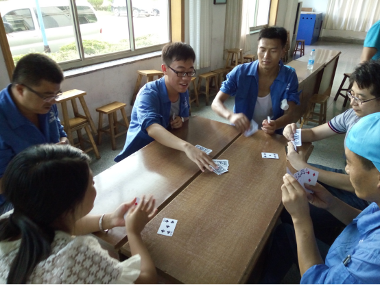 务实队&正直队最先结束对抗,正直队胜出,他们的表情也非常轻松,看来早已是胜券在握啊。诚信队&超越队在比赛过程中就比赛规则有一些小争执,我们看到裁判员已经在进行调节。比赛继续进行,超越队胜出。坦诚队&感恩队在比赛的尾声出现了逆转,原本感恩队的陈雷、陈雅雯想闷掉坦诚队的原厂长,但无奈原厂长变换了出牌方式,以致对方无法实施原计划战术,最后坦诚队胜出。在阳光队&服务队的对抗中,实力雄厚的阳光队也轻松胜出。